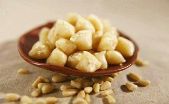 做法:先将白砂糖放入锅中加少许水,用文火煎熬至粘稠,再加入松子仁,调匀。然后继续煎熬,直至用铲子挑起成丝状,不粘手时,停火,将糖倒在涂有食用油的盘中,待稍凉,将糖切成小块,即可食用。
